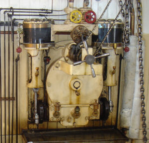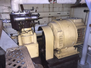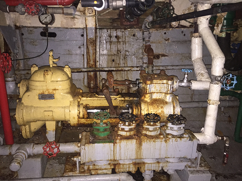 Many of the Master’s systems are run by steam, some requiring continuous steam pressure and others on an on demand basis. The boiler produces steam and each system is fed via a series of high pressure steam tubes, valves and return tubes. The engine is powered by the main high pressure steam tube and all other ship’s steam systems run form the auxiliary steam tubes. For example, steam from the boiler is sent to the pumps that circulate water from the condenser to the boiler.